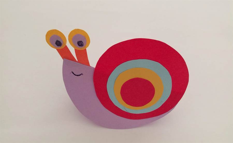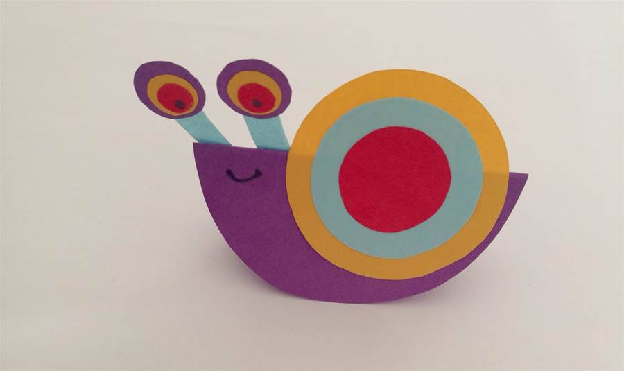 幼兒園親子手工,用彩色卡紙剪10個圓兩個長條,做出一個小蝸牛