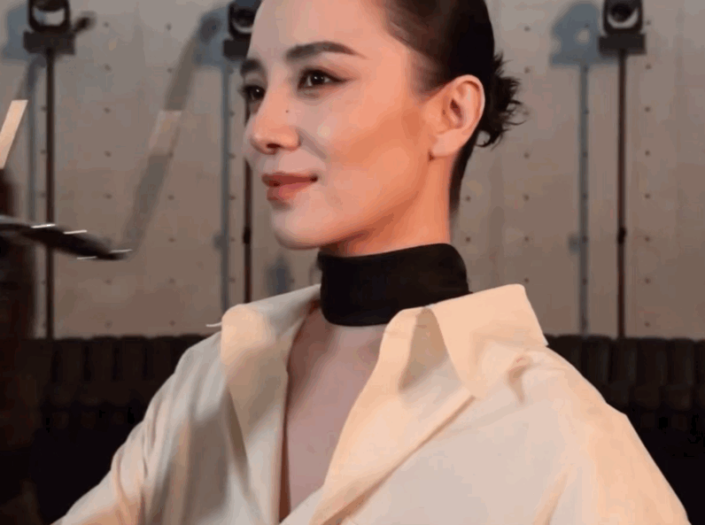 最妙的是,她高顱頂與飽滿額頭形成完美頭臉比例,面中線條還極其平坦,五官精致,清冷美人一下子就有了靈魂。