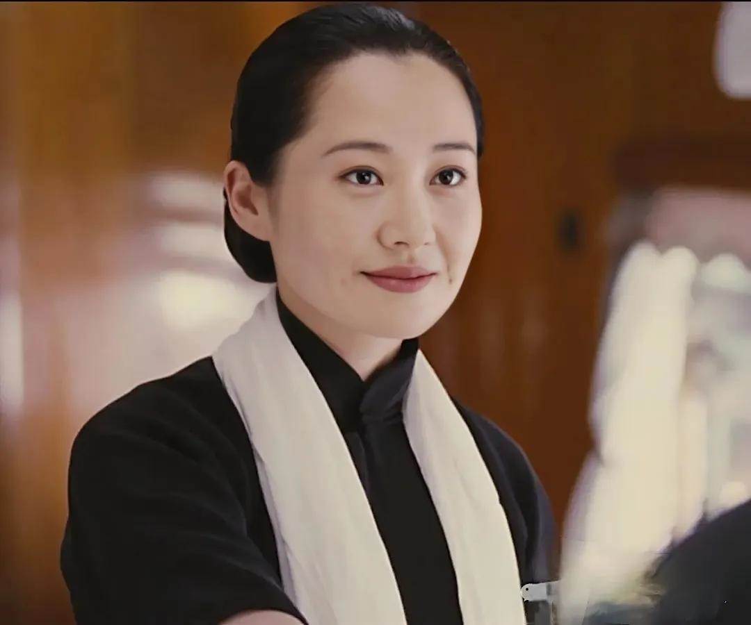 「大光明+腦后發髻」的發式年代感濃郁,配上許晴優雅柔和的氣質,對著鏡頭淡然一笑,人物形象立馬就出來了。