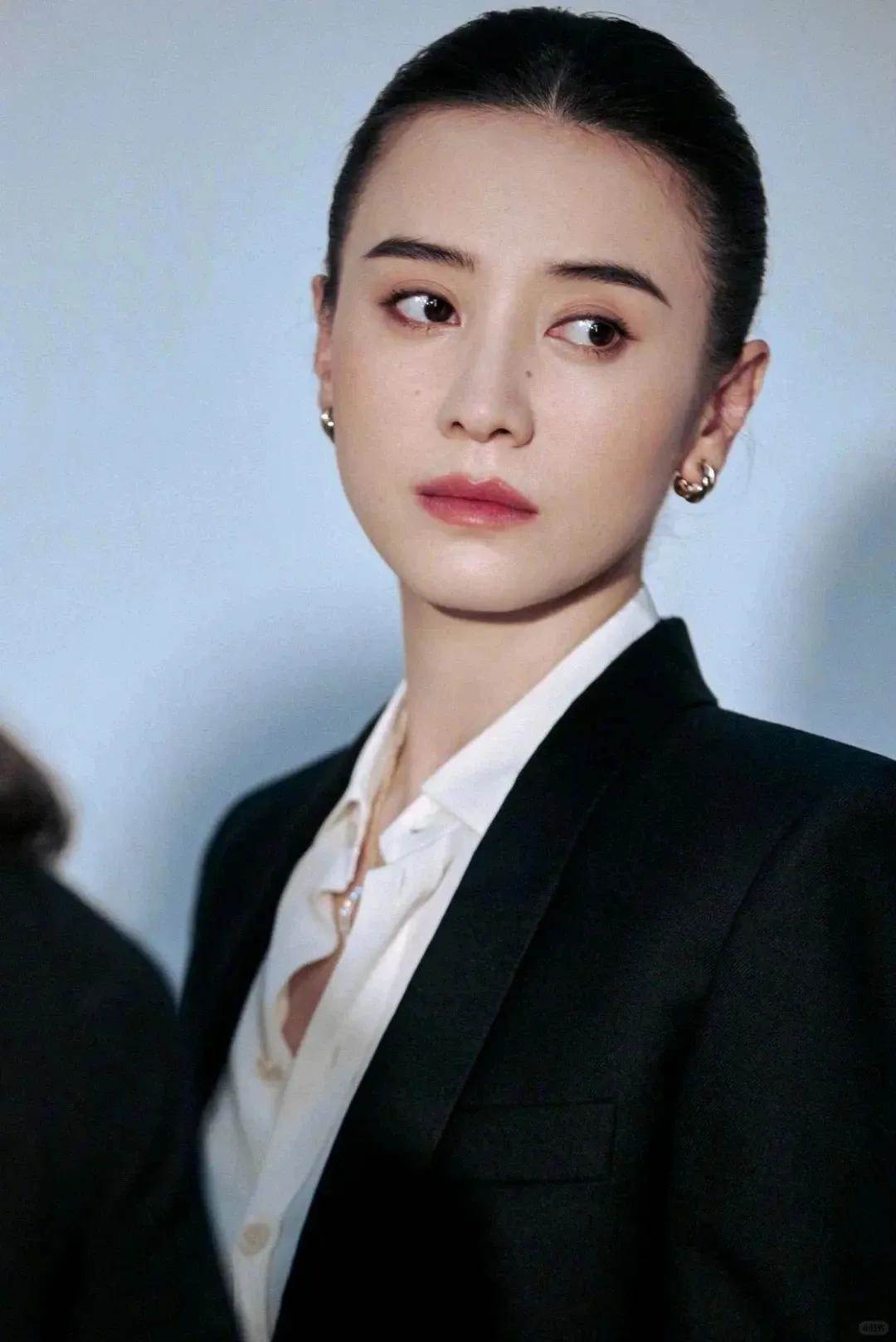 她拍戲,基本上清一色的大光明,露出飽滿的額頭,讓五官顯得更加精致和大氣。