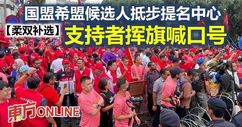 (新山26日訊)柔雙補選今日提名,埔萊國盟及希盟候選人今日在雙方領袖及支持者陪同下,抵步提名中心,氣勢不分上下。