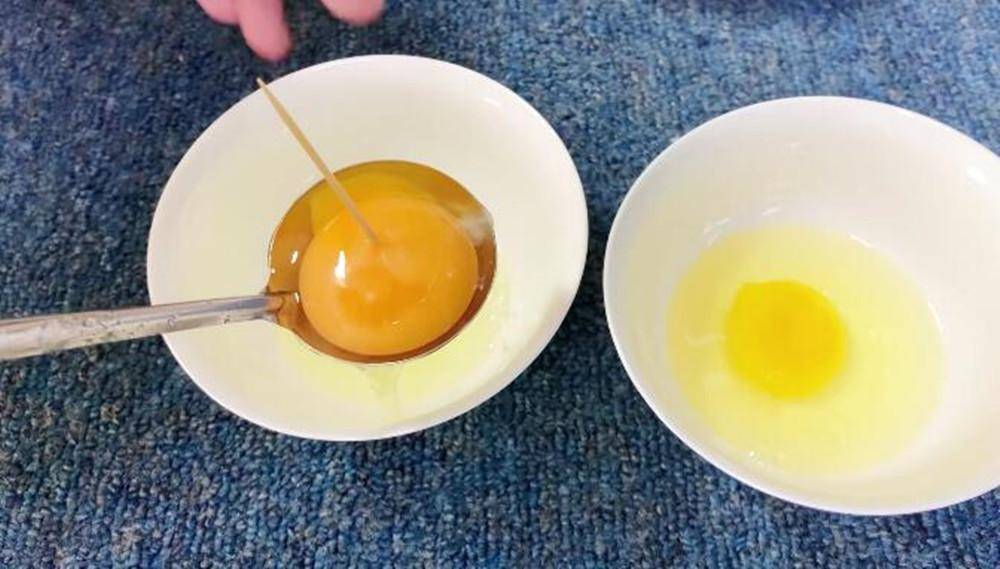 我们可以找来一个牙签测试一下鸡蛋的新鲜程度,如果牙签轻轻地放在蛋黄上,手放开以后它不会掉下就证明这个鸡蛋:第一品质好;第二够新鲜。分别将牙签插入这些鸡蛋黄中。第一个粉壳鸡蛋,一插入牙签一会儿就滑落了;第二个红壳鸡蛋,牙签也是倾斜得比较厉害的;第三个白壳鸡蛋的表现明显就要比上两个强很多,牙签能屹立不倒。这就证明品质最好、最新鲜的当属白壳鸡蛋了。