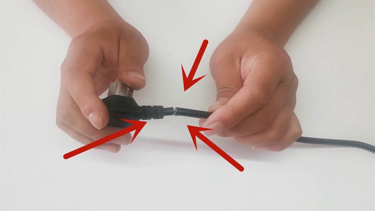 很多人平时维修其实也是维修错了,直接用胶布缠一下,这样就错了。因为插头根部的电线总在折。里边的铜丝已经露出来了,如果两股铜丝连在一起就会连电,是非常危险的。