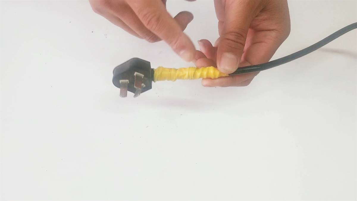 缠好之后,插头的尾部就变得非常硬了,这时就不是这一个位置受力了。把硬线缠完之后,就用胶布缠绕一下,防止露在外边的电线再次破皮,反复的缠绕几次,让绝缘胶布均匀的裹在电线上。这样缠好之后的插头,再用时就不是破裂的那个位置受力了,用起来就非常方便了,也不怕连电烧坏电器或者是对身体造成危害了。