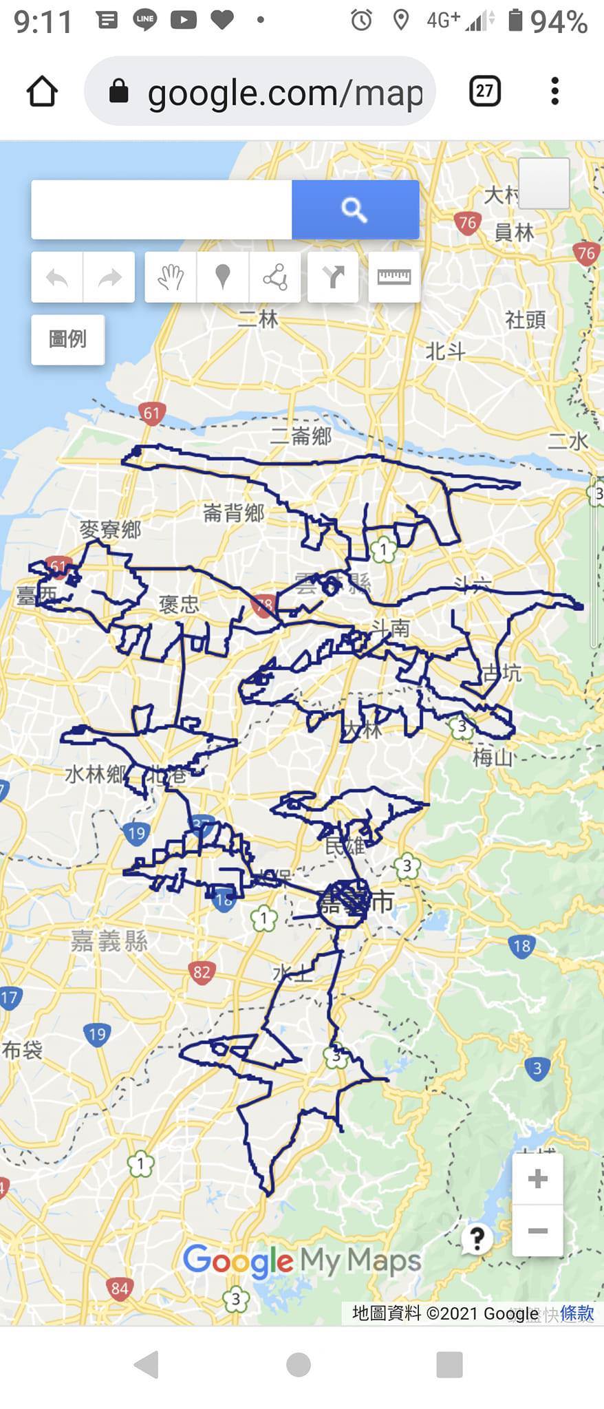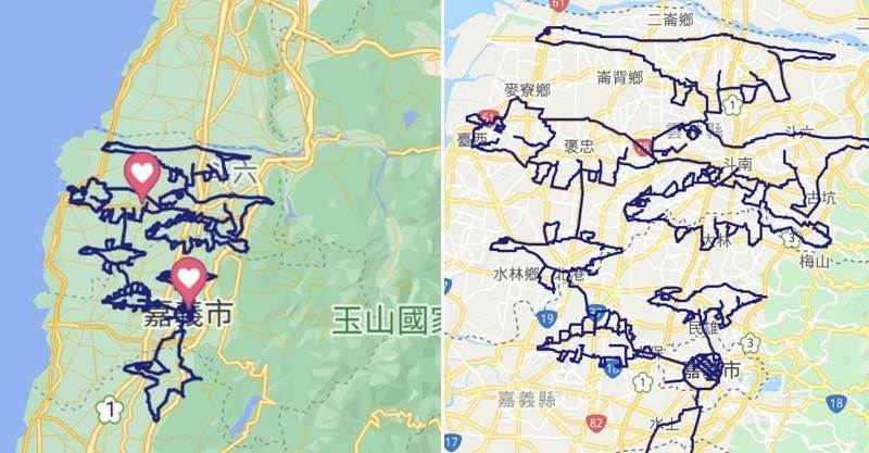 根據TVBS新聞網報導,最近在Google地圖上以單車GPS記錄畫出9隻不同類型恐龍的天才,就是這位名為陳振祥的網友。將雲林嘉義的地圖當作畫布的他,據說每完成一隻恐龍就要騎上100至130公里,因此前前後後可是騎了約莫1千公里才完成這幅「侏儸紀公園路線圖」。