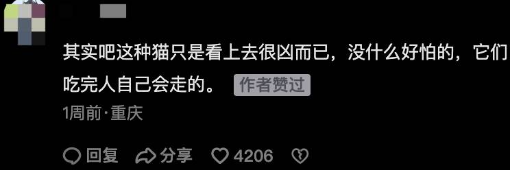 “其实吧这种猫只是看上去很凶而已,没什么好怕的,它们吃完人会自己走的。”网友@wind 在路过街边商店的时候,也遇到了四只小猫,正准备上前去逗一下哈基米,结果……当场就被吓傻了!