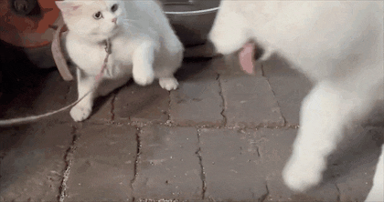 有网友还注意到其中一只体格更彪悍的白猫,是个非常典型的三白眼。据了解,这两只猫是网友@心碎小奕 乡下爷爷家养的猫,平日在村里时,就非常横行霸道。当天,网友看到它们时就逗着“嘬嘬嘬”了几声,结果猫咪一转过头就被震慑住了:网友不自觉地声音都在放低,生怕哪一句话说错就惹恼了两位猫哥。当时网友的身边还带着一只萨摩耶,对比一看,高下立判。狗狗纯真的仿佛不谙世事的大学生,遇到缅甸刀尖上滚过来的刽子手,一旦撒开,那就是狼入虎口啊!之前单纯的狗子就曾“不知死活”的往猫咪旁边凑过,结果惨遭一顿大比兜,当场就被打到脑袋邦邦响,夹着尾巴就跑了。评论区还有人表示,别说狗了,这猫凶起来连人都得退让: