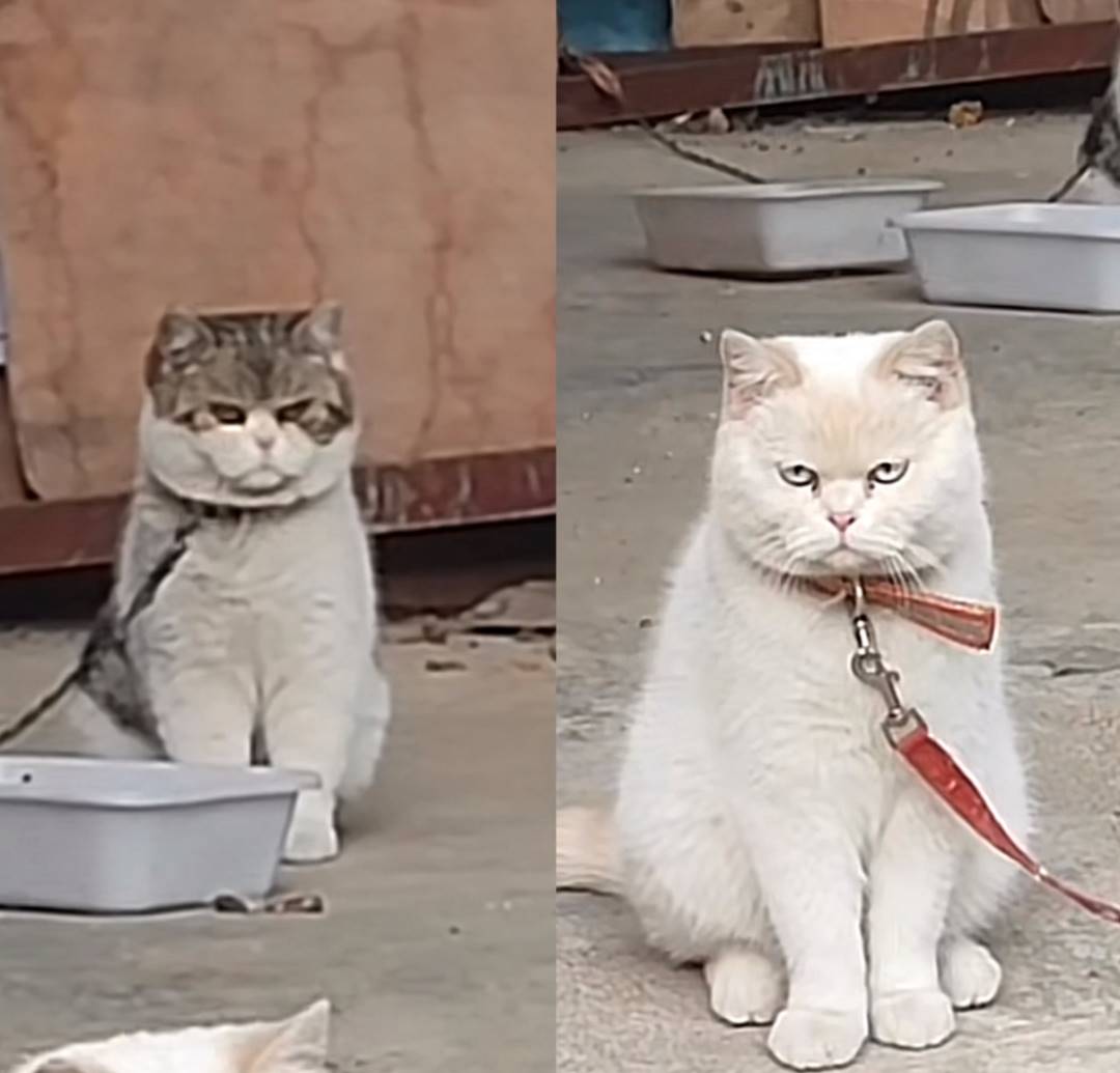 江湖中流传过这样一句话:能被拴起来的猫都不是好惹的!其实在刚一开始时,对“拴猫”这事我还是非常痛恨的。毕竟猫咪都是天性爱自由的动物,把它们拴住,本质上就是对猫咪的一种束缚,更何况小猫那么可爱为什么要拴起来?它们被拴在院子里,虎背熊腰的身型让人不敢靠近,一脸凶神恶煞,连眼神中都透着一种杀气,一看就不好惹!