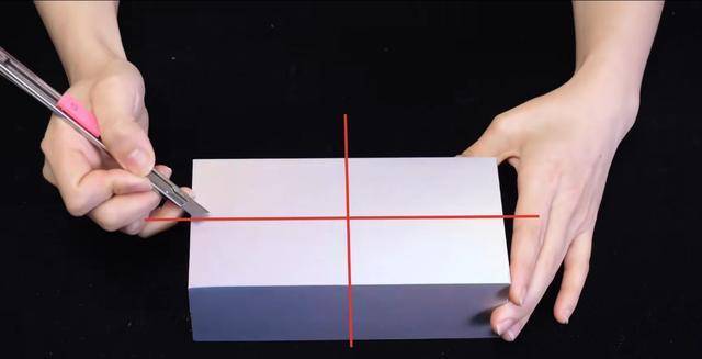 在盒子上画上一个8.5x8.5的正方形,然后用小刀切下来