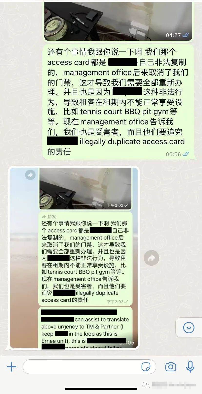 更离谱的事是,今年8月,自从有新租户入住以后,所有租户的公寓门禁卡都失效了。不仅出入小区受影响,公寓的配套设施,比如预定小区健身房和BBQ Pit等等,都不能使用。联系小区的物业才知道,是因为这家中介公司私自复制了多张小区的门禁卡给租户用。而这些门禁卡都是不符合规定的。