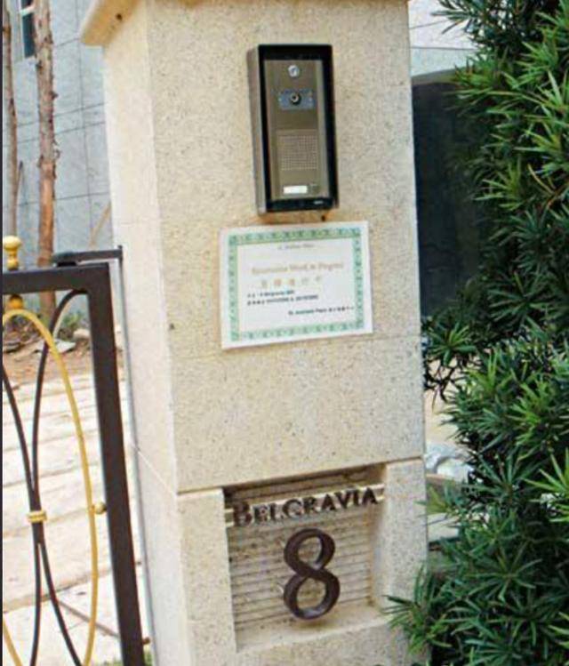 再来看一看大门,外围都被围墙给包围了起来;在大门这里也安装了可视门铃,安保方面做的还不错,并且大门门牌号还是个吉利的8号,选位置也是很用心了。