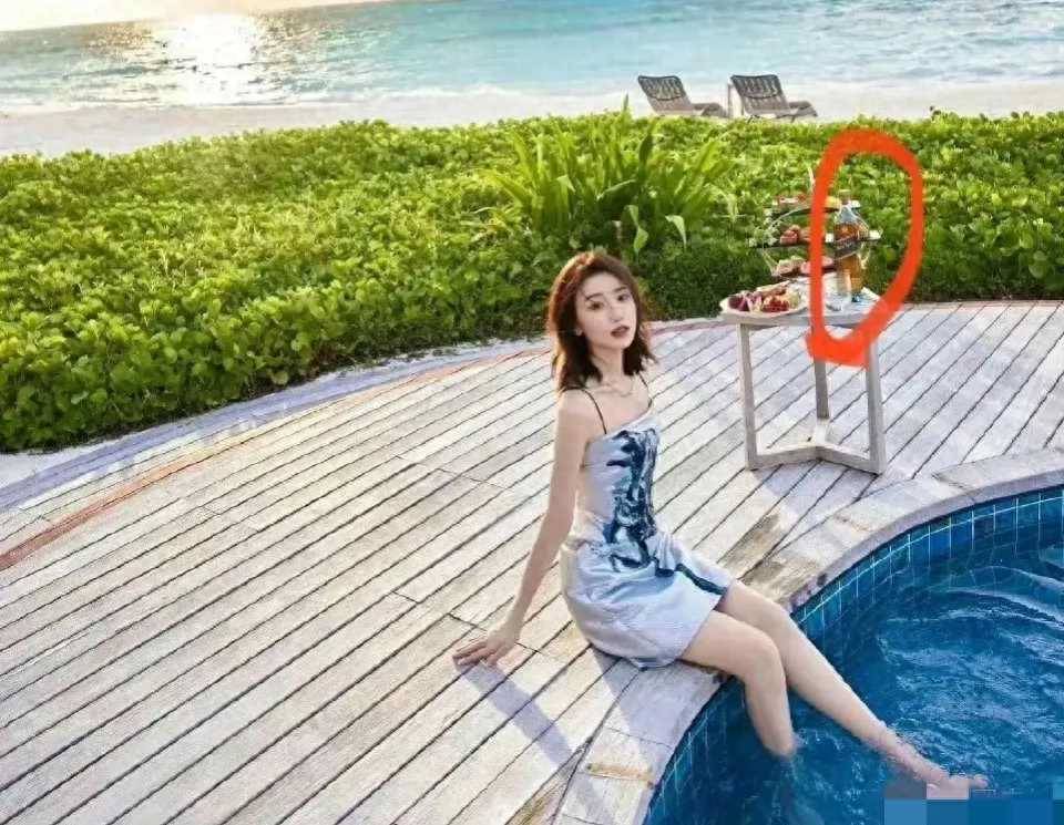 其次,女方曾發了一張度假照,桌子上的酒品與男方在劇組時展示的一模一樣。
