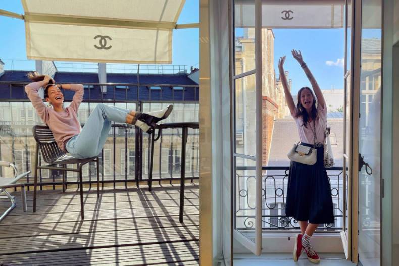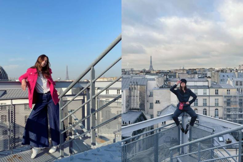 例如眾多女生嚮往的鏡面階梯、能夠一覽巴黎市景的露天陽台,都是她天天拍攝穿搭照,或是在那裡喘一口氣的休息寶地。