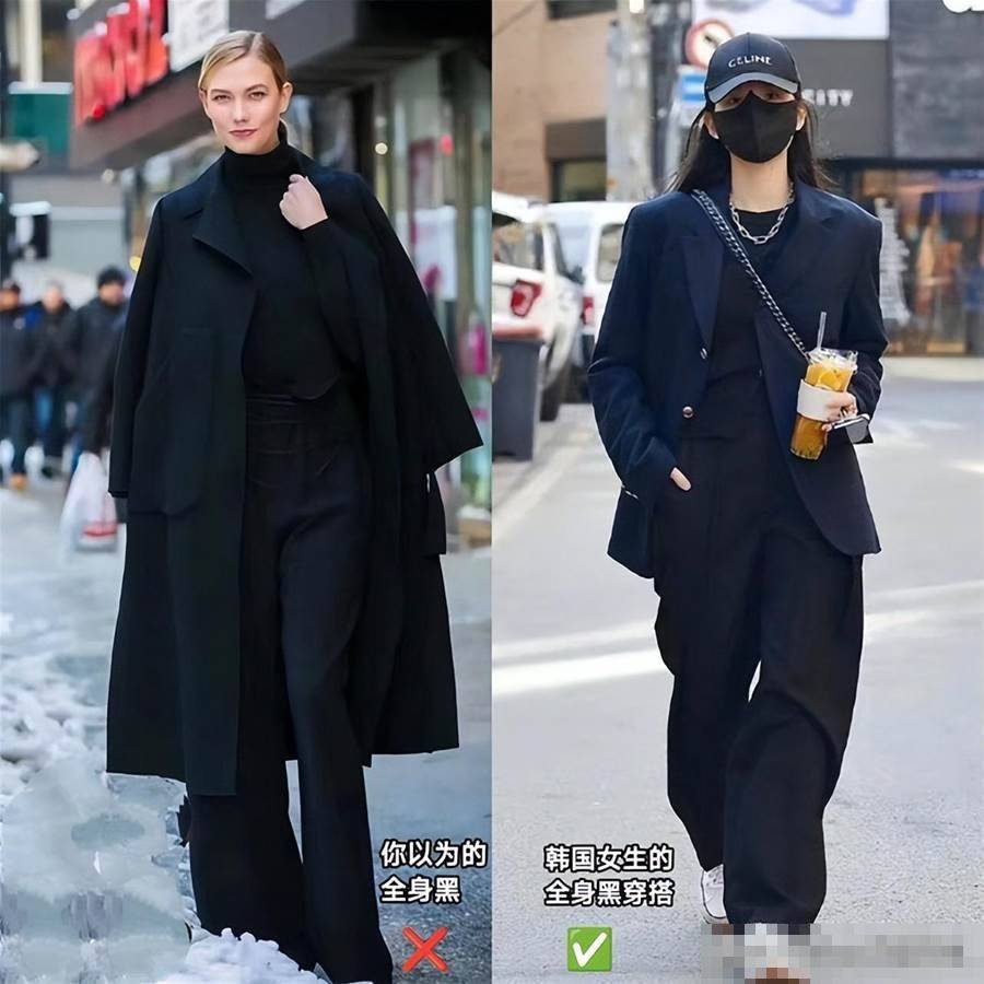 韓國女生真不愧是穿衣高手,就最普通的「全黑穿搭」,都穿得時髦