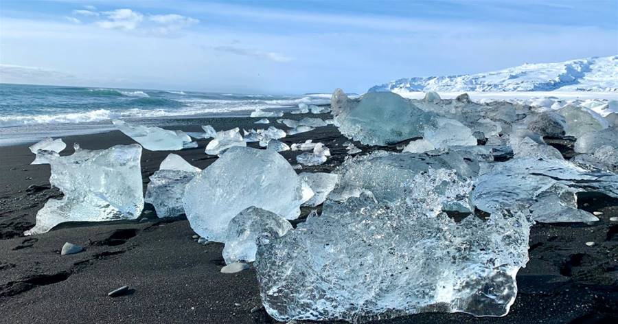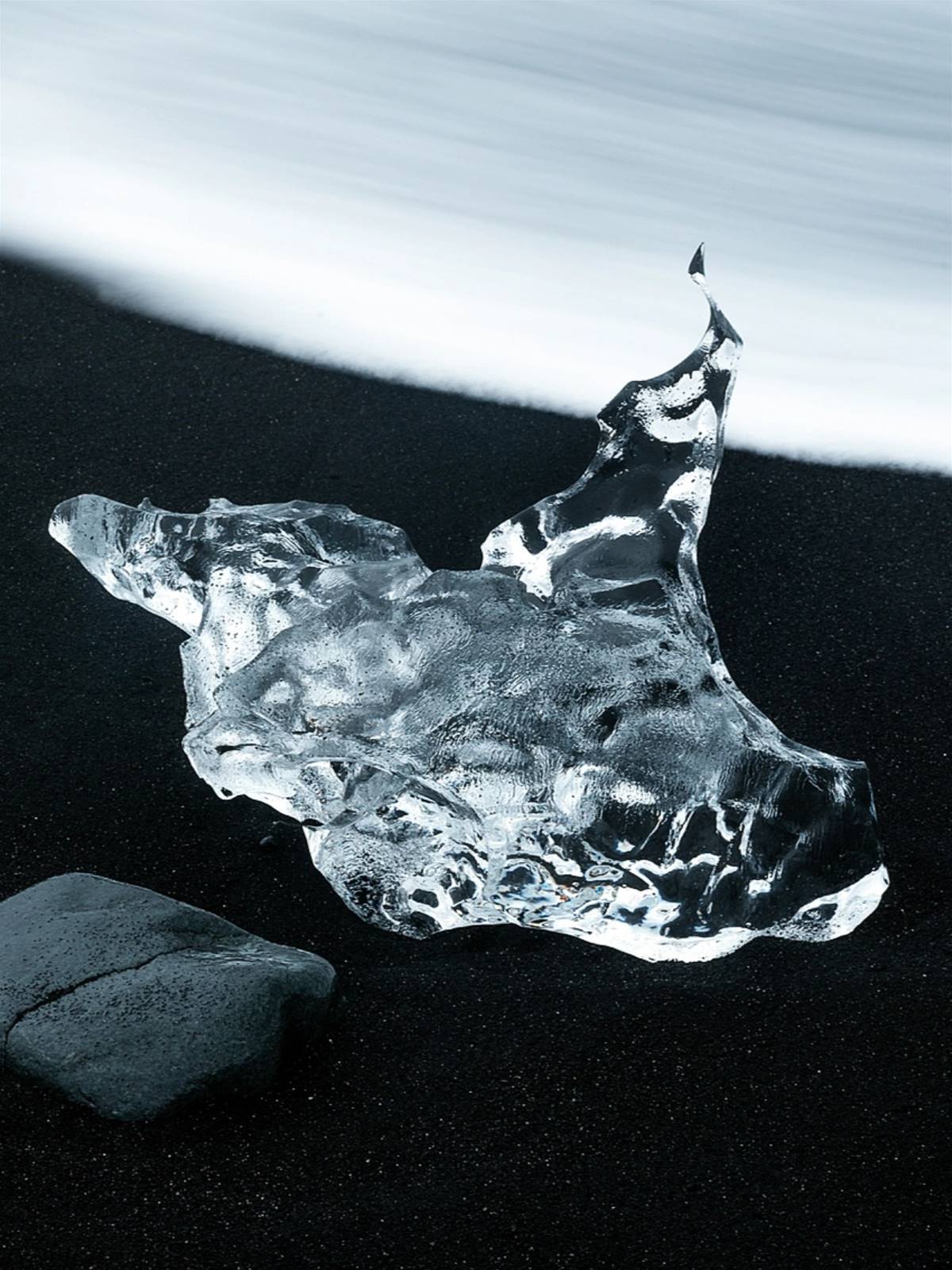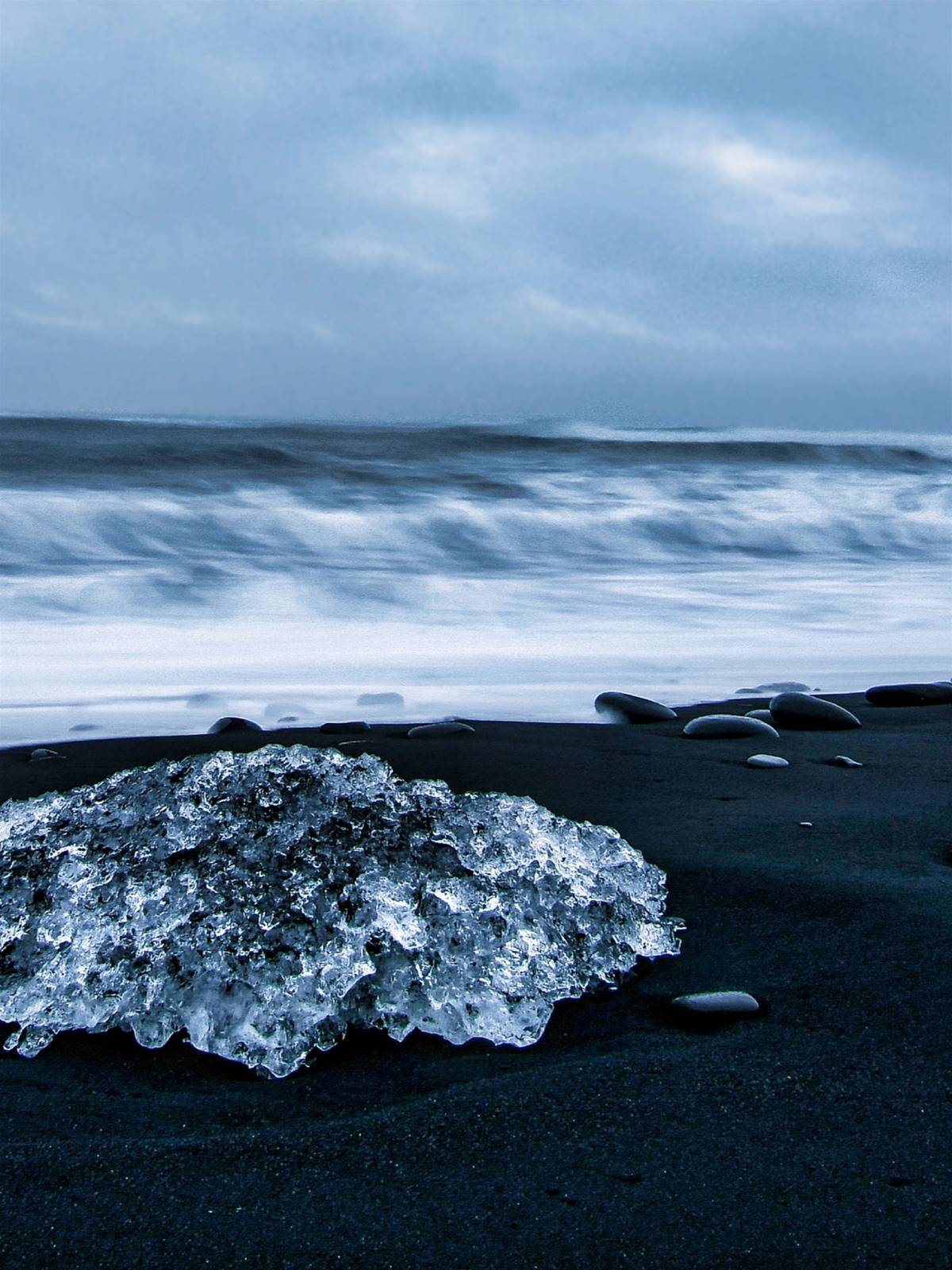冰島最大的杰古沙龍冰河湖對面的「鉆石沙灘」,在奇特的黑色沙灘上散落著無數如未切割的天然鉆石一般的冰塊,黑色沙灘與晶瑩的「鉆石」襯映而成的自然美景被人們親切地稱為「鉆石沙灘」。