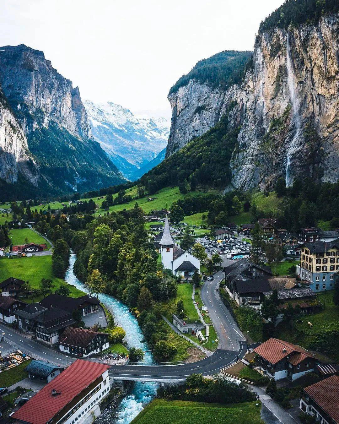 這里被譽為「天然童話村莊」,坐落在阿爾卑斯山脈的深處。四面環山,可以看到壯美的瀑布、巍峨的山峰、蜿蜒的小溪。小鎮上有許多典雅的木屋,白色墻壁、綠色窗框,每一幅畫面都像是明信片一般美麗。