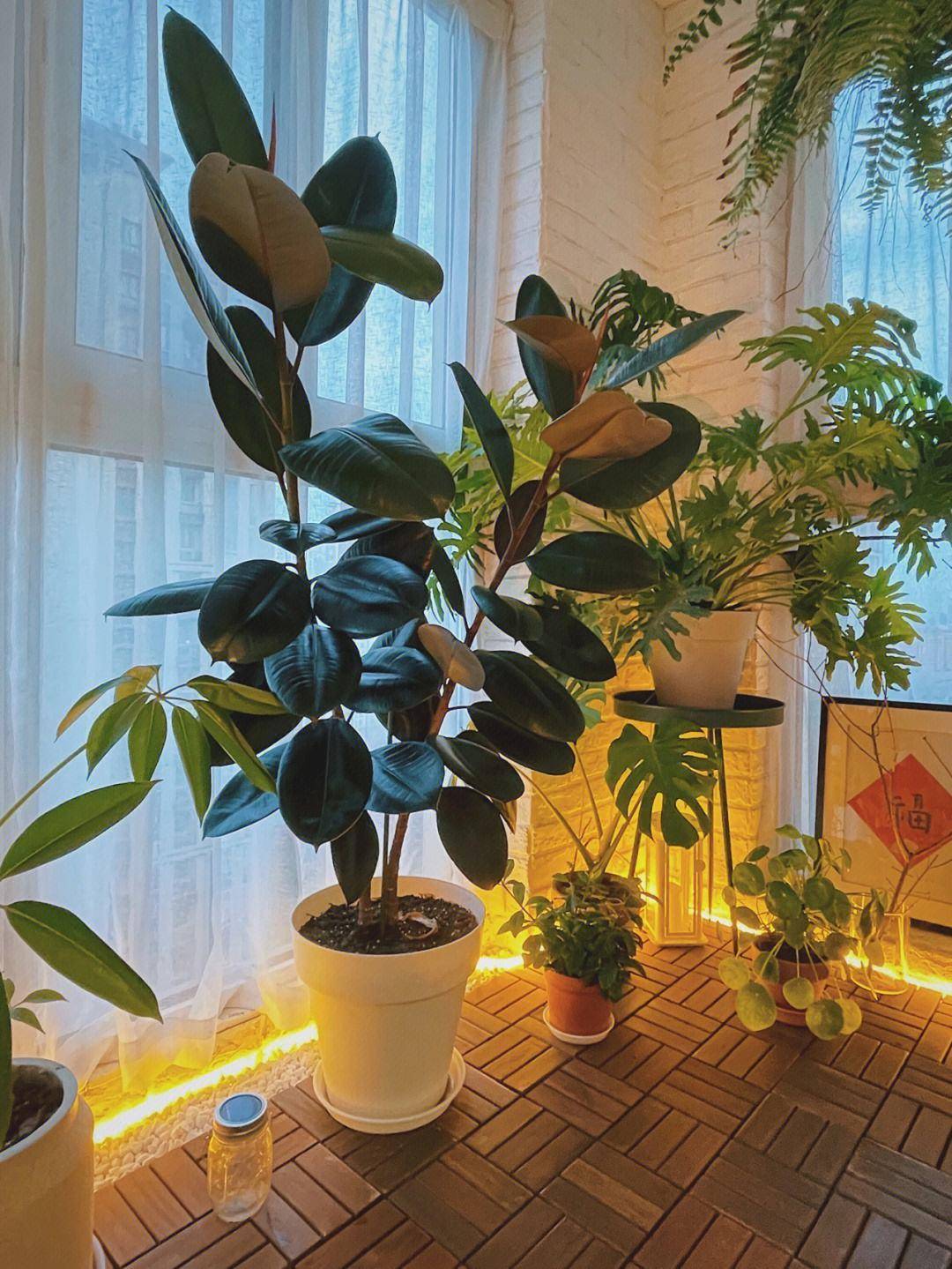 橡皮樹的葉片大而肥厚,油亮有光澤,看起來十分的端莊大氣,凈化能力很強,是有名的「除塵小能手」不但能凈化空氣里原有的有害氣體,還能凈化裝修及二手煙遺留下來的有毒氣體,對主人的身體健康有很大的好處,再加上它的寓意好,有著「大葉招財」的美好說法,所以很多人都喜歡養家里。