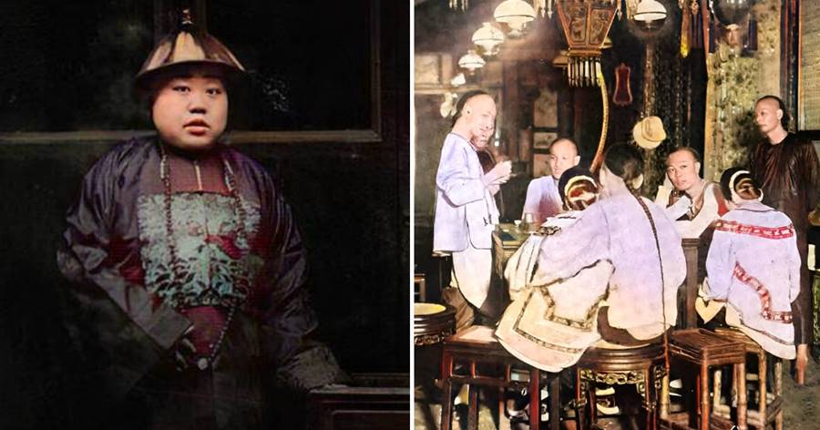 清末上色老照片:長相喜感的大頭官員,紈绔子弟在青樓里喝花酒
