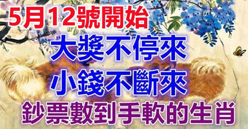 5月12號開始大獎不停來,小錢不斷來,鈔票數到手軟的生肖